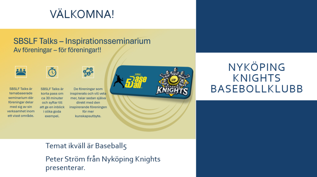 I premiären av SBSLF Talks fick deltagarna en inspirerande presentation av Peter Ström, Nyköping Knights, som delade med sig av hur föreningen internt gjort en resa från att enbart använda B5-konceptet som en rekryteringsmodell till att även använda sig av Baseball5’s fulla potential i sin ordinarie Barn & Ungdomsverksamhet.